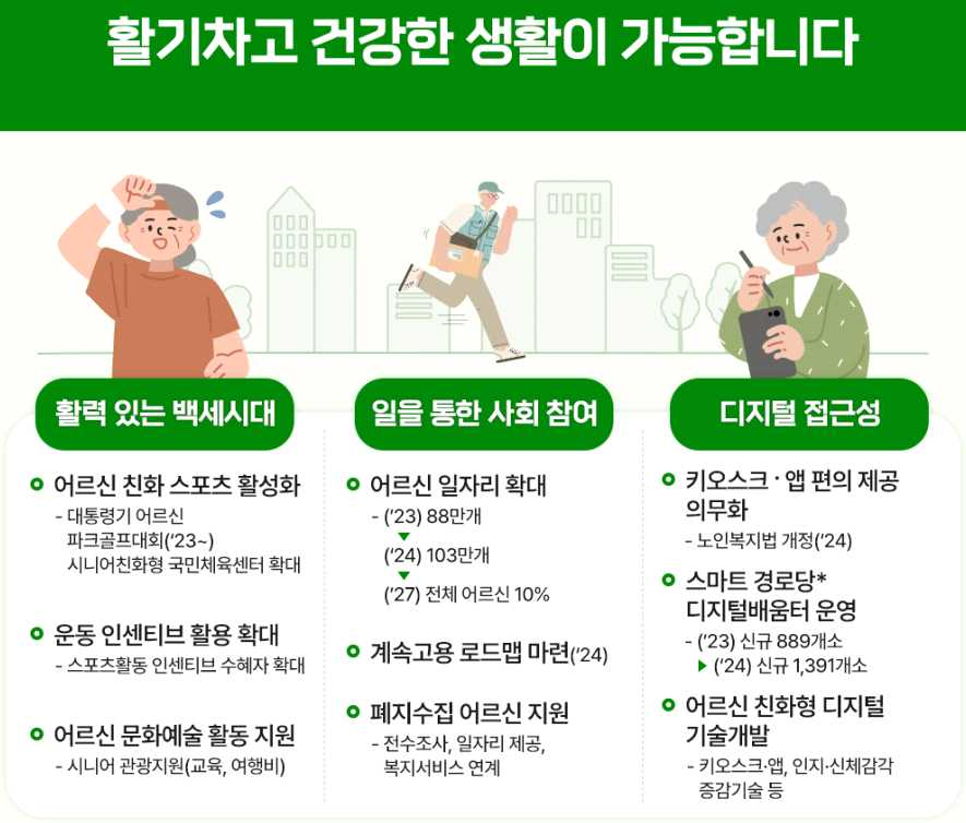 더불어 노인복지관·경로당 등과 연계를 통해 참여 접근성을 개선하여, 인센티브 혜택 수혜자를 2023년 1만 명에서 2028년에는 50만 명으로 확대할 계획입니다.