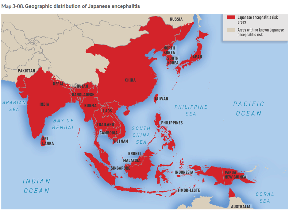 * 일본뇌염 위험 국가[CDC: Center for Disease Control(미국 질병 관리 센터) 2023.12.]