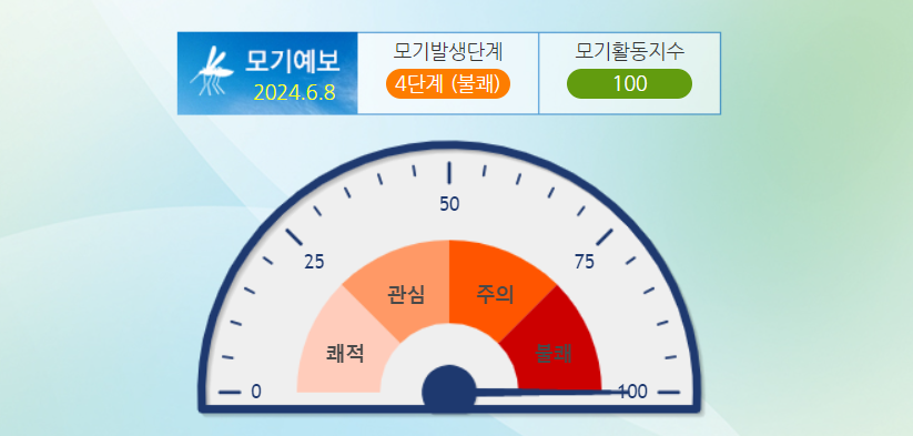모기 예보제는 모기 발생 가능성을 4단계(쾌적·관심·주의·불쾌)로 구분해 행동 요령을 알려주고 있습니다. 서울에 거주하지 않더라도, 요즘 모기 상황을 알 수 있어 야외 활동 등에 도움이 될 수 있습니다.