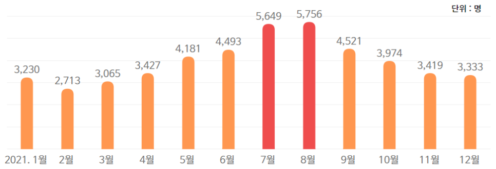 건강보험심사평가원의 자료에 따르면, 외이도염으로 진료를 받은 환자 수는 2019년~2020년에는 예년과 비슷한 156만 명대를 유지하다 2021년도에 약 167만 명으로 급증했습니다. 더불어 매년 7월과 8월에 외이도염 환자 수가 가장 많다고 합니다.