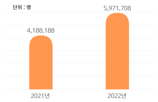 건강보험심사평가원 자료에 따르면, 2021년 장염 전체 환자 수는 4,188,188명에서 2022년에는 5,791,708명으로 크게 증가했습니다.