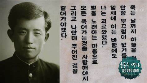 "죽는 날까지 하늘을 우러러 한 점 부끄럼이 없기를, 잎새에 이는 바람에도 나는 괴로워했다.