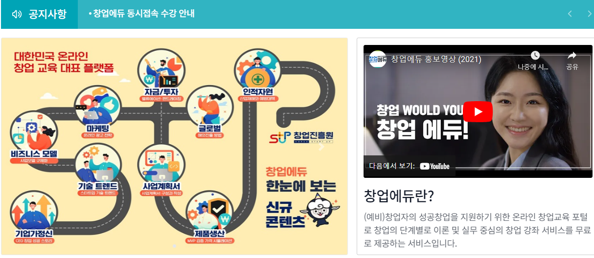 4) 창업에듀에서 제공하는 강좌는 홈페이지뿐만 아니라 유튜브(창업에듀)에서도 수강 가능