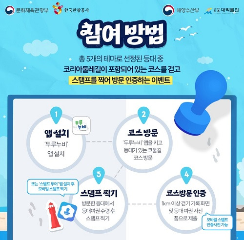 등대를 가까이 찾아간 이유는 문화체육관광부와 한국관광공사가 7월 한 달간 '등대 스탬프 투어'를 운영하기 때문입니다. 대한민국 등대주간을 맞아 열리는 등대 스탬프 투어는 코리아둘레길 인근 주요 등대를 소개하고, 직접 방문해 인증 시 추첨을 통해 등대 1일 숙박권 등 다양한 선물도 제공합니다.