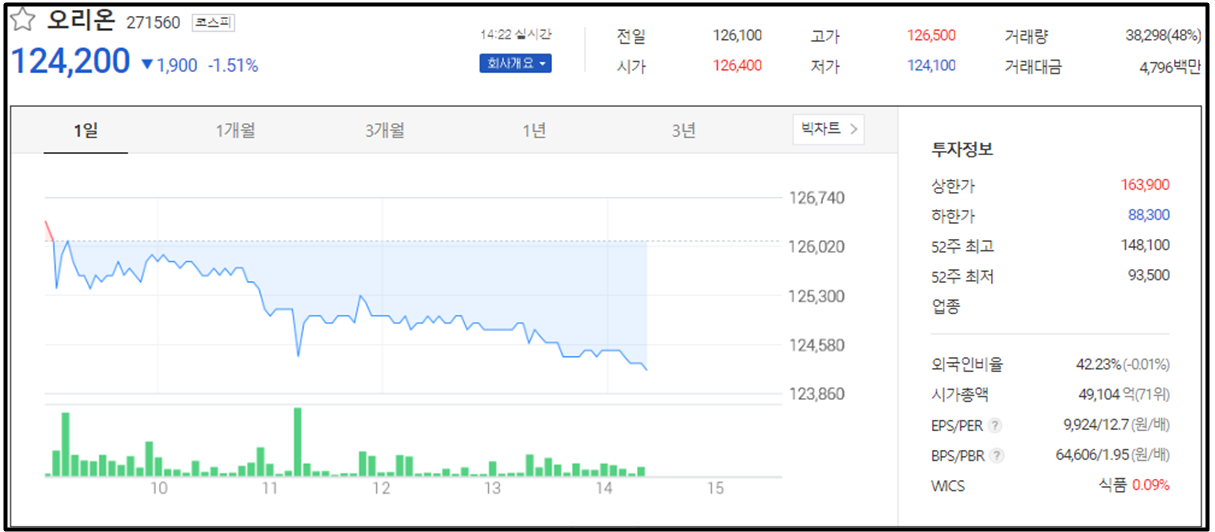 주식이 하락장세를 지속하는 이유는 올해 1월 오리온이 해외 종속회사를 통해, 제약·바이오 업체 지분을 대량 인수했다는 소식이 투자자들에게 실망감을 안겨줬기 때문입니다.