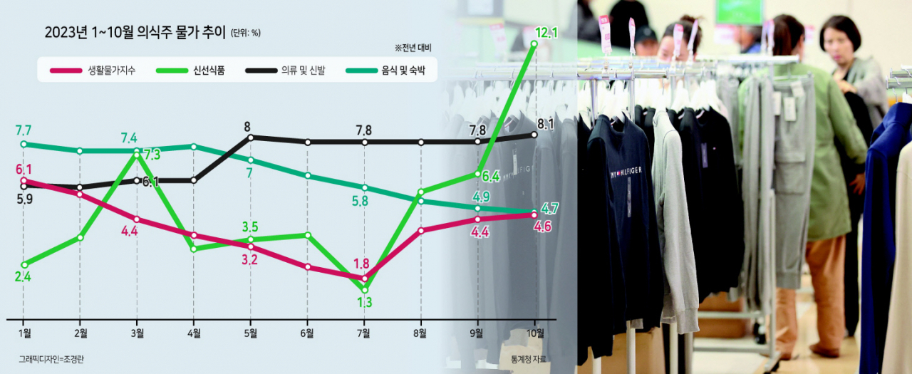 의복·신발 물가지수 역시 137로 평균을 크게 웃돌았다고 합니다. 지난 5년 동안 전체 물가는 16% 오르는 데 그쳤지만, 기본적인 생활에 필요한 품목의 가격이 크게 오르면서 생활물가 부담도 커진 것입니다.