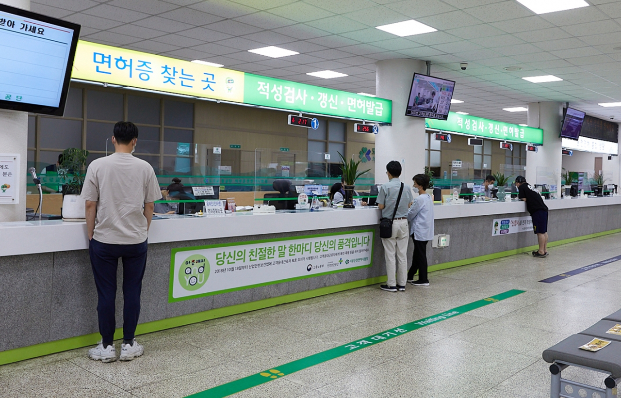 적성검사 대상자는 정기 적성검사 기간 내에 전국의 운전면허시험장 또는 경찰서 교통민원실에 정기 적성검사를 신청합니다.
