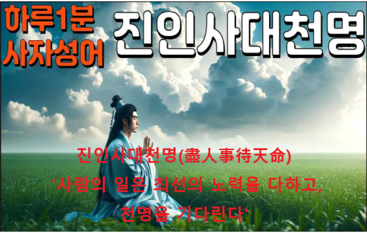 나는 언제쯤 남부럽지 않은 부자가 될까요?라고 조바심을 가지면, 될 일도 안 된다고 합니다. 즉 진인사대천명(盡人事待天命)이라는 말이 있잖아요. 사람이 할 수 있는 일을 다하고, 하늘의 뜻을 기다려 볼 수 밖에요.(=수인사대천명)