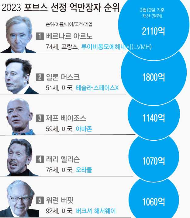 ◆ 블룸버그 억만장자 지수 500대 부자 순위 11위에서 1년 만에 5위 자리를 회복