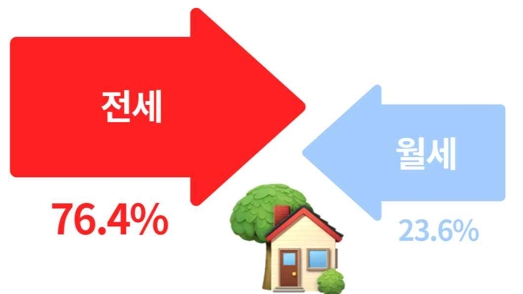그렇다면 실제 MZ세대가 전세와 월세 중 더 선호하는 거주 형태는 무엇일까요? 설문 조사 결과, 참여자의 76.4%가 압도적인 비율로 전세를 월세보다 더 선호한다고 답변하면서, 전세와 월세 간 선호도에서 큰 차이가 드러났습니다.