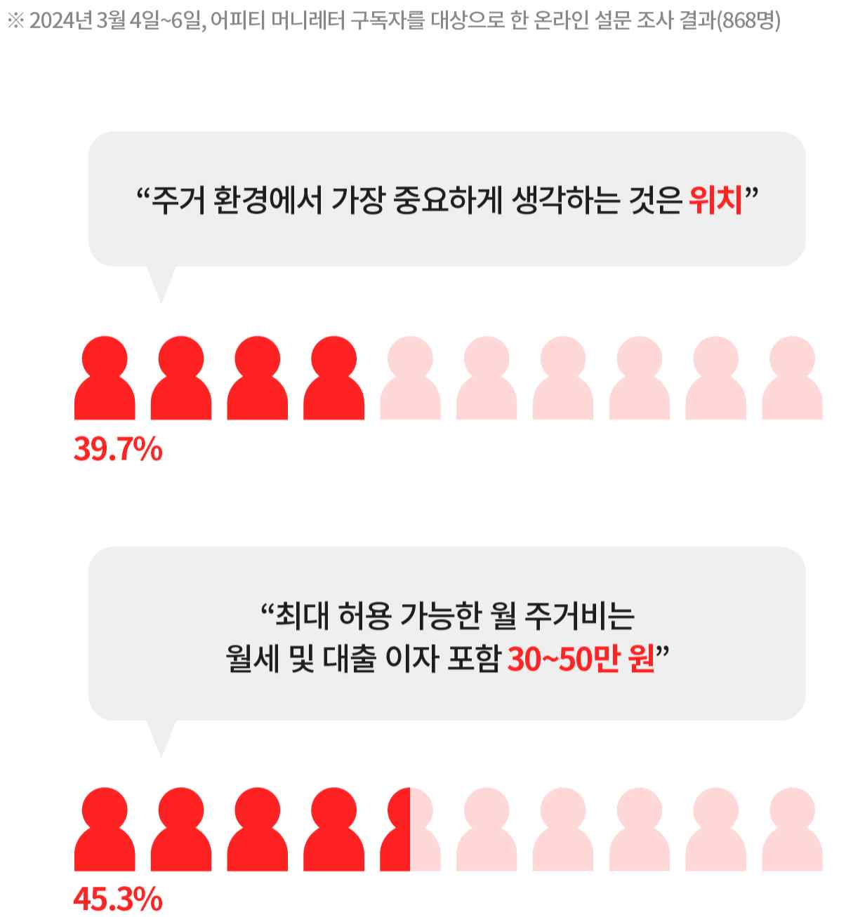 - 기간 : 2024년 3월 4일~3월 6일, 대상 : 어피티 머니레터 구동자 중 868명의 대한민국 MZ세대, 방법 : 온라인 설문조사