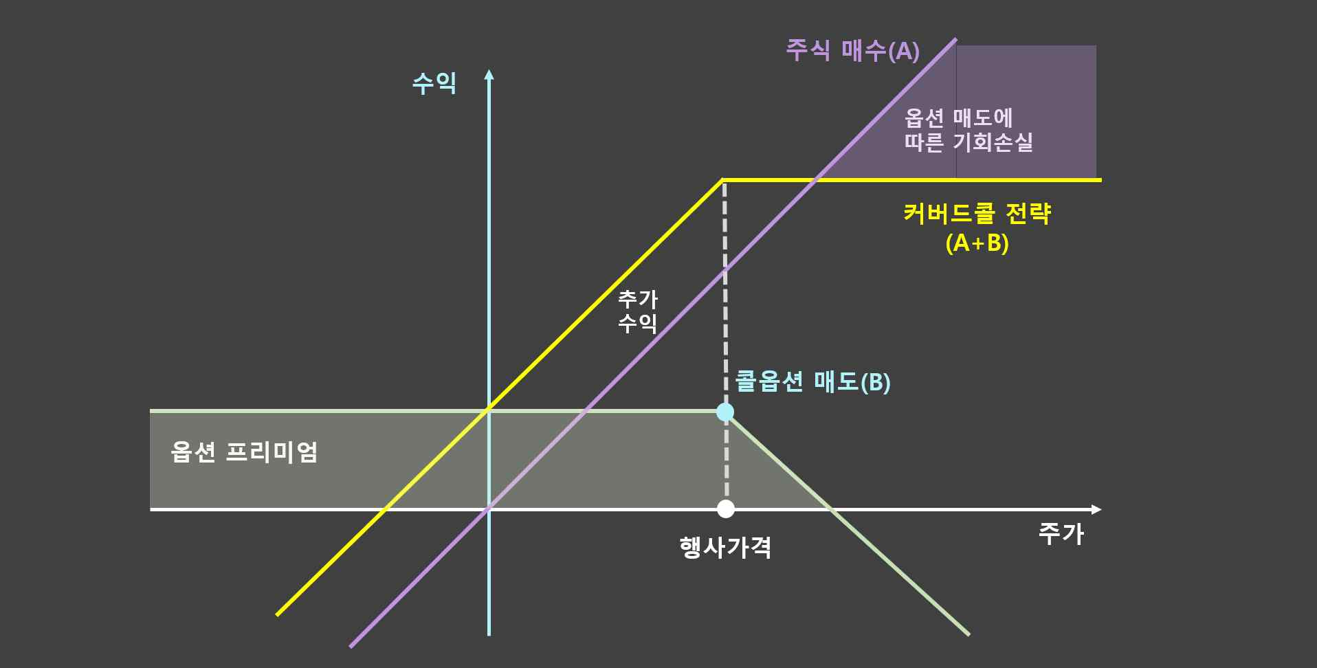 커버드콜 ETF는 기초자산에 대한 콜옵션을 파는 '커버드콜 전략'을 통해 수익을 얻고, 이를 투자자들에게 나눠주는 방식인 것입니다. 주가가 내려갔을 때 손실을 줄일 수 있고, 주가의 변동성이 심할 때도 안정적인 수익을 얻을 수 있습니다.