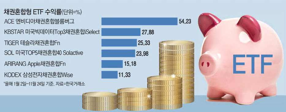 또한, 'ACE 엔비디아 채권혼합 블룸버그 ETF'와 'ACE 미국 나스닥 100 채권혼합 액티브 ETF'도 '멀티 에셋 형 ETF'로, 최근 6개월 수익률에서 상위권을 차지하고 있습니다.
