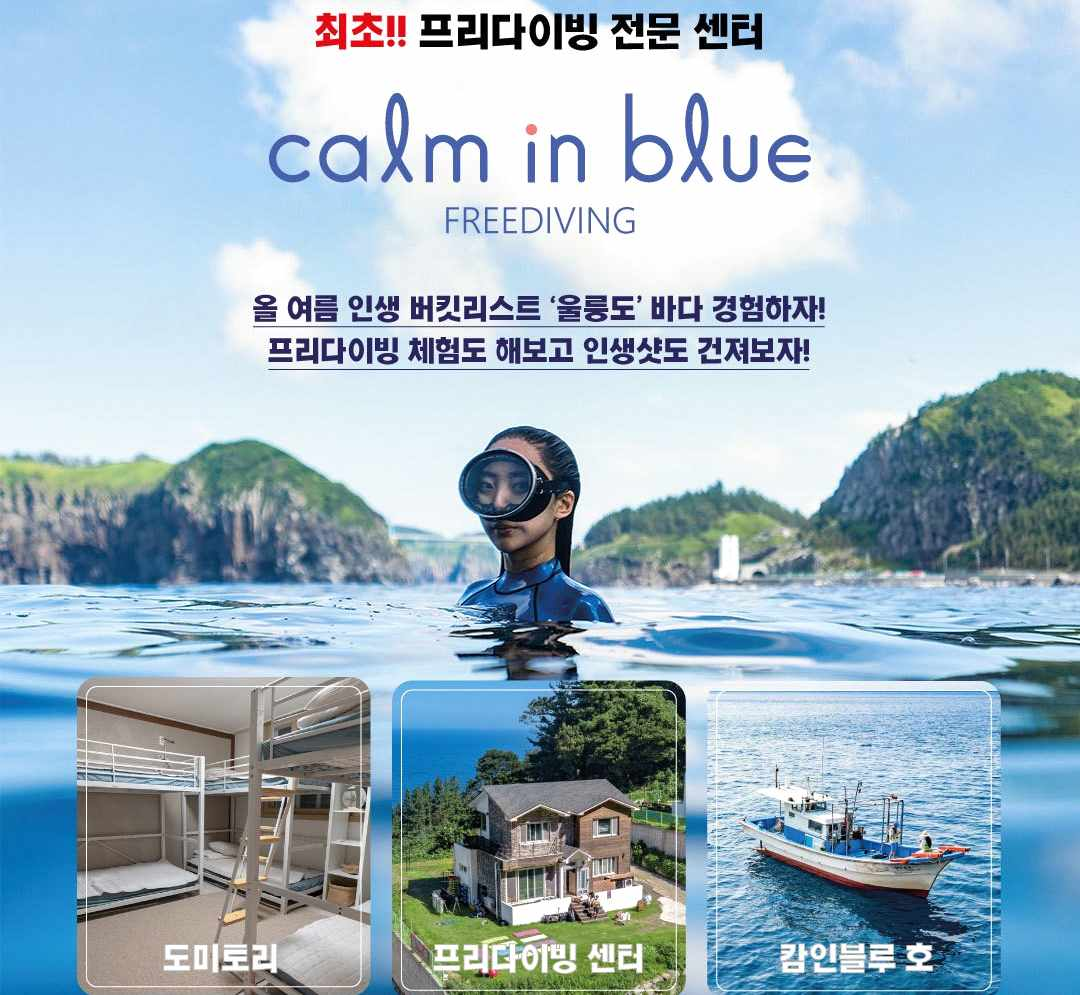 2023년 3월, 울릉도에 프리다이빙 센터 '캄인블루'가 문을 열었습니다. 그동안 울릉도에는 산소통을 메고 바다에 들어가는 '스쿠버다이빙' 업체만 있었는데, '캄인블루'가 들어오면서 울릉도에도 프리다이빙 센터가 생겼습니다.