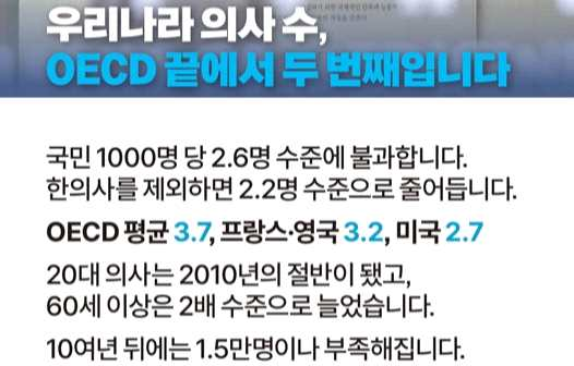 * 또한, 19년간 증원이 이루어지지 않아 부족해진 의사 수를 감안하면 결코 많은 수준이 아닙니다.