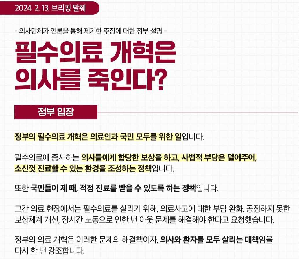 * 집단행동에 대한 정부의 대응은 국민의 생명과 건강을 지키기 위한 당연한 조치입니다.
