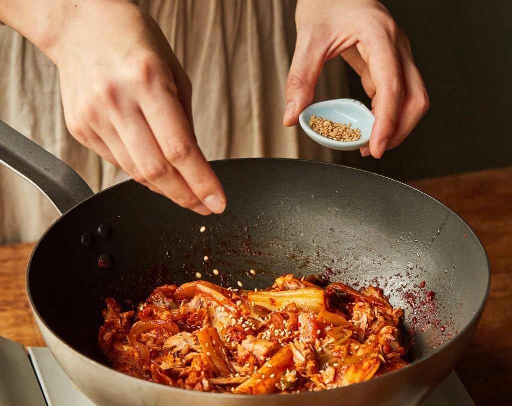 한국인들은 김치가 적당히 익기 시작하면 김치찌개를 곧잘 끓여 먹습니다. 보통 돼지고기나 참치 통조림을 넣고 함께 끓이며, 기호에 따라 두부나 떡, 당면 등을 넣기도 합니다.