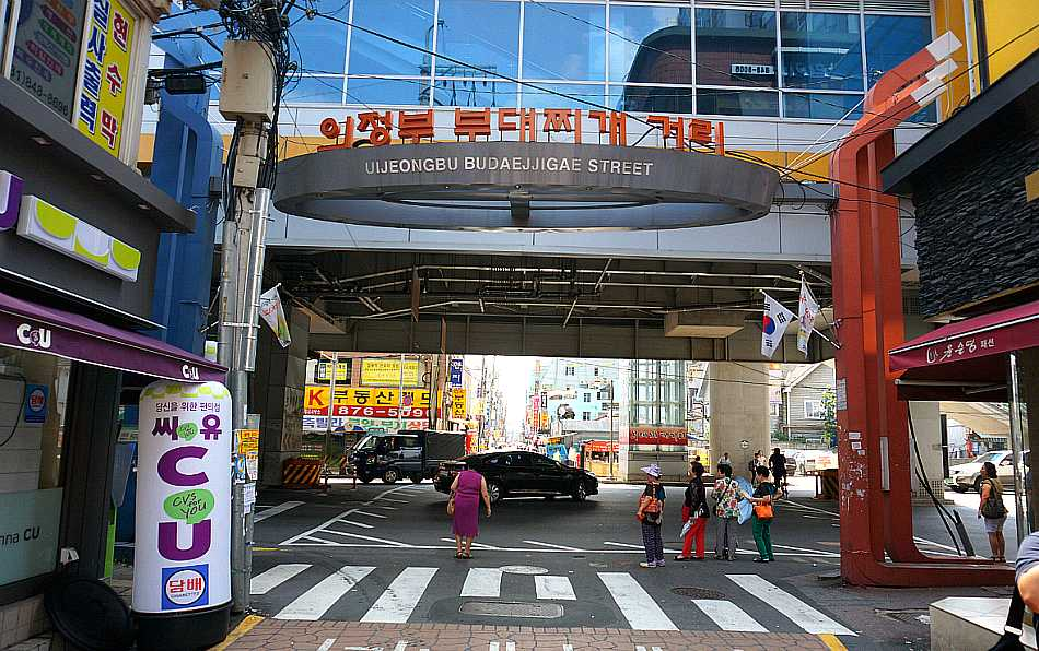 의정부시에서는 2008년 이곳에 '의정부 부대찌개 거리'라는 대형 아치로 된 간판을 설치했습니다. 의정부 외에 주한미군이 주둔한 평택, 송탄 등도 부대찌개로 유명한 지역이 되었습니다.