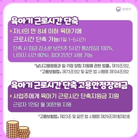 * 관련 법령 : 「남녀고용평등과 일·가정 양립 지원에 관한 법률」 제19조의 2, 「고용보험법」 제73조의 2 및 같은 법 시행령 제104조의 2