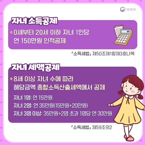 * 0세부터 20세 이하 자녀 1인당 연 150만 원 인적공제