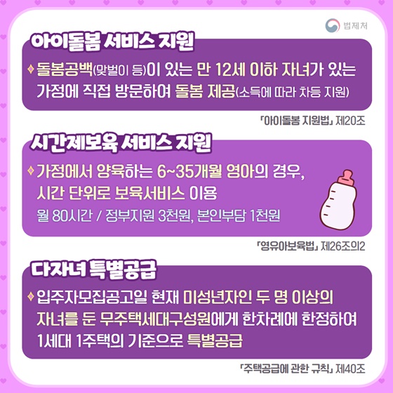 3. 아이 돌봄 서비스 지원, 시간제 보육 서비스 지원 및 다자녀 특별공급