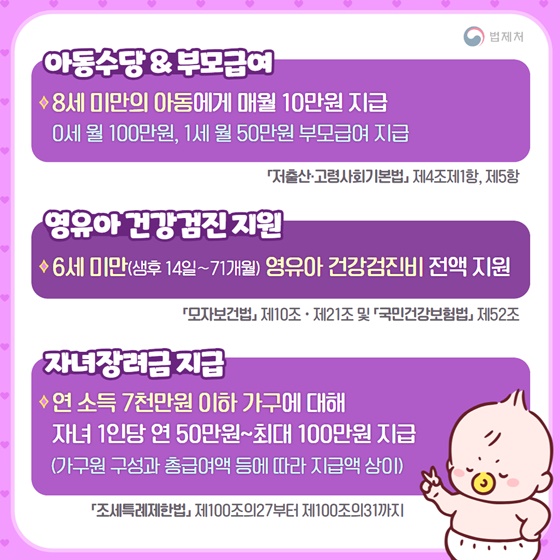 2. 아동수당 & 부모 급여, 영유아 건강검진 지원 및 자녀장려금 지급