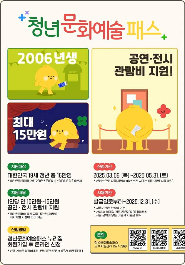먼저, 올해 19세가 되는 2006년생 청년에게 최대 15만 원을 지원하는 '청년 문화 예술 패스'를 지난 6일부터 발급하고 있습니다.