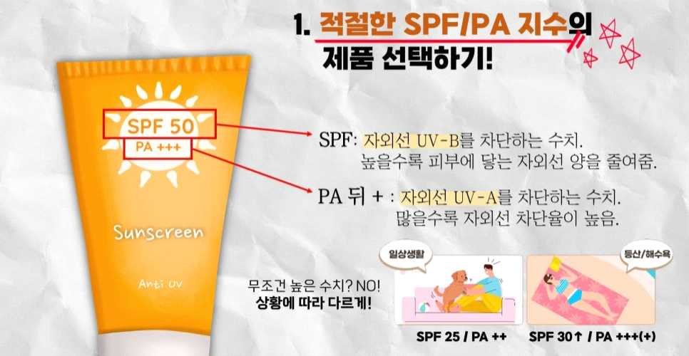 1. 적절한 SPF, PA 지수의 제품 선택하기