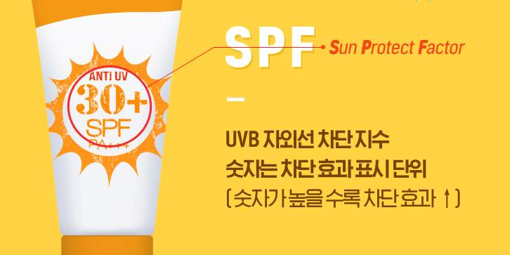 ▶ SPF : 자외선 UA-B를 차단하는 수치, 높을수록 피부에 닿는 자외선량을 줄여줌