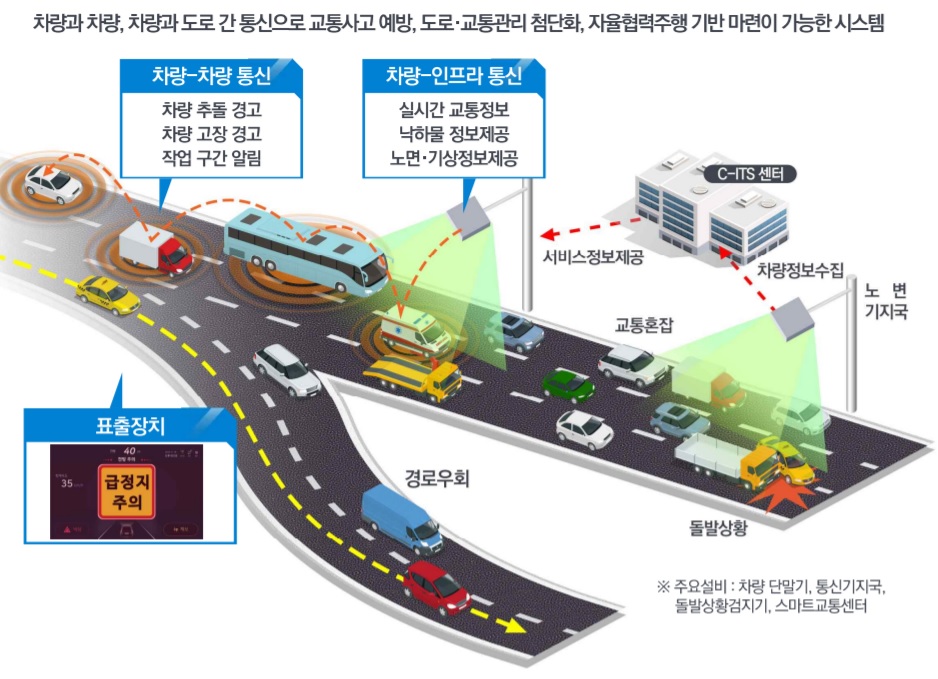또한, 자율협력 주행을 위한 인프라(C-ITS) 구축에도 자율주행 지도를 활용할 계획이며, 'C-ITS'란 자율차가 다른 차 또는 인프라와 도로상황 등에 대한 정보를 실시간 주고받으며 주행하는 차세대 기술입니다.
