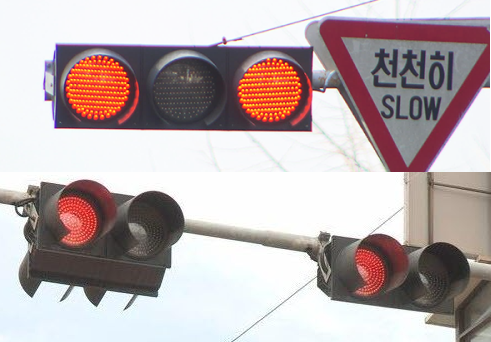 * 간단히 말하면, 황색 점멸등은 주변을 살피며 서행하고, 적색 점멸등은 일시 정지 후 주행하는 것입니다.