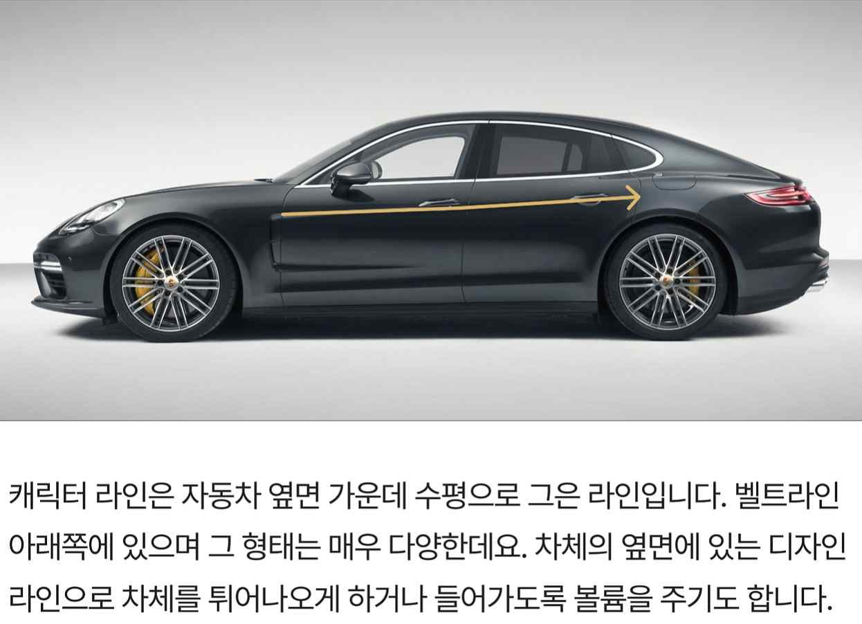 라인 기울기에 따라 자동차의 이미지가 달라지기 때문에, 차체의 디자인 관점에서 가장 중요하고 대표적인 선이 바로 캐릭터 라인이라고 볼 수 있습니다.