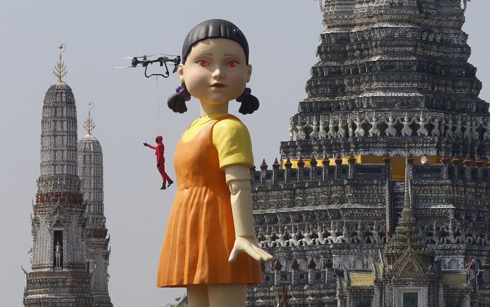 시즌 2에 신드롬은 미국은 물론 세계 각국에서도 계속되고 있습니다. 태국 방콕 짜오프라야강에 설치된 영희 대형 조형물은 현지인들의 인증샷 명소가 됐으며, 지난 1일 프랑스 파리 샹젤리제 거리에서 진행된 '무궁화 꽃이 피었습니다' 재현 이벤트에는 456명의 팬이 초록색 트레이닝복을 입고 게임에 참여해 이목을 집중시켰습니다.