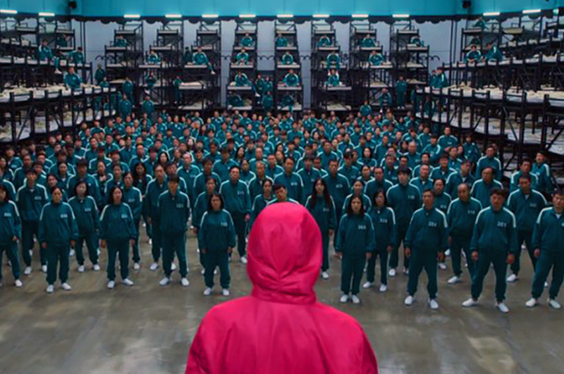 '오징어 게임'은 생존을 건 게임을 소재로 하는 '데스게임' 서사라는 보편성을 따르고 있으나, 많은 이들이 공감할 수 있는 현대인의 욕망과 좌절, 지나친 경쟁의 폐해 등 사회비판적인 메시지를 게임의 룰로 담아내 전 세계 시청자들의 큰 호응을 얻었습니다.