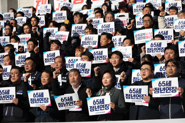 노동계는 기존 연공급 임금체계를 유지하면서 법정 정년(60세)을 국민연금 수령 시기(1969년 이후 출생자는 65세)까지 연장하는 방안을 내세우고 있습니다.