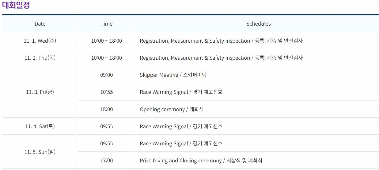 ■ 국제요트대회 행사 일정