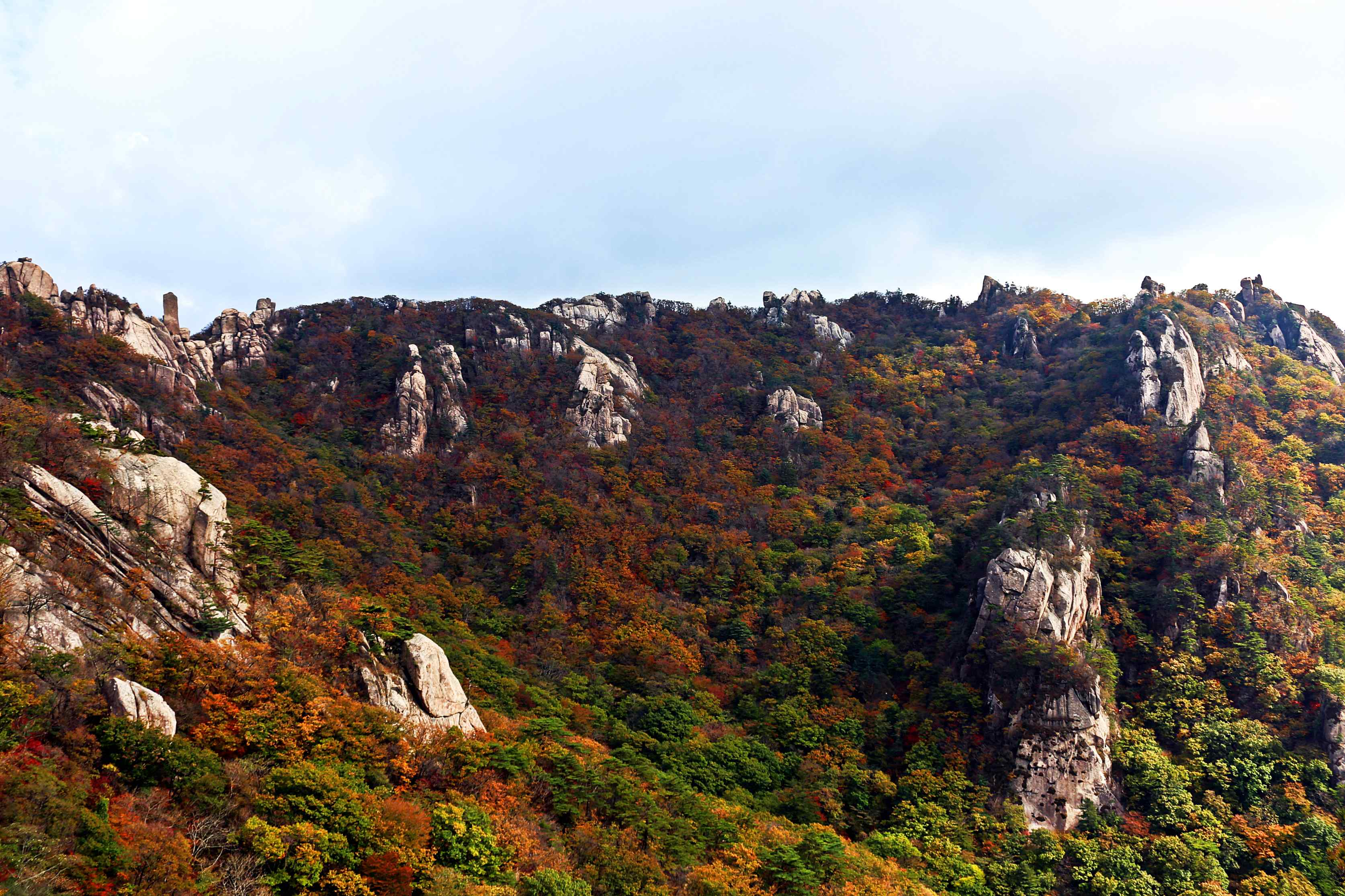 주요 봉우리인 천왕봉과 비로봉, 문장대는 백두대간의 장엄한 산줄기를 잇고 있어 암봉과 암릉이 잘 발달되어 있습니다.