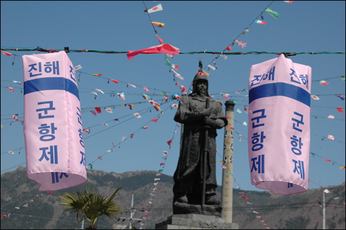 전국 최대 벚꽃축제 진해군항제의 유래를 보면, 지난 1952년 4월 13일, 우리나라 최초로 충무공 이순신 장군의 동상을 북원로터리에 세우고 추모제를 거행하여 온 것이 계기가 되었습니다.
