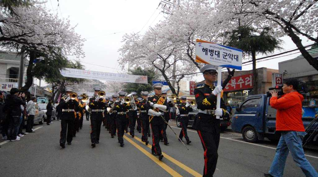 또한, 군항 도시의 특성을 살린 군악 의장 페스티벌은 축제 기간 중 금요일 저녁과 주말에 개최되는데 군악·의장이 융합된 군대 예술 공연으로 군악대의 힘찬 마칭 공연과 의장대의 멋있는 제복에 절도 있는 공연은 진해군항제 벚꽃축제에서만 볼 수 있는 공연입니다.
