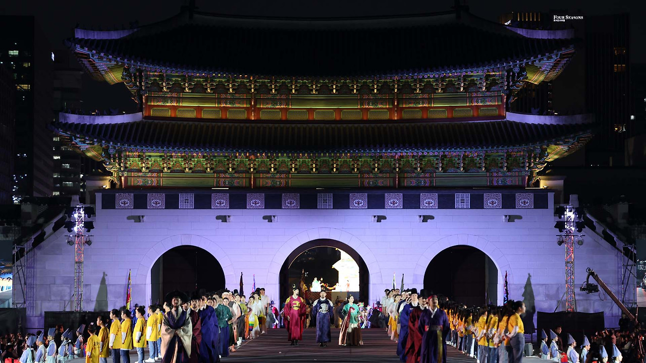경복궁 수문장 교대 의식은 조선시대 왕실 호위 문화를 상징하는 프로그램입니다. 조선왕조실록 예종 1년 수문장 제도의 시행 기록을 바탕으로 2002년부터 매년 진행되고 있는 상설 행사입니다.