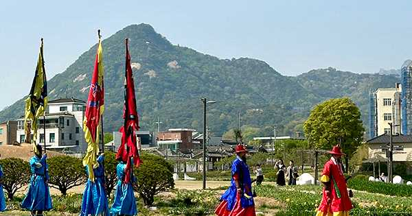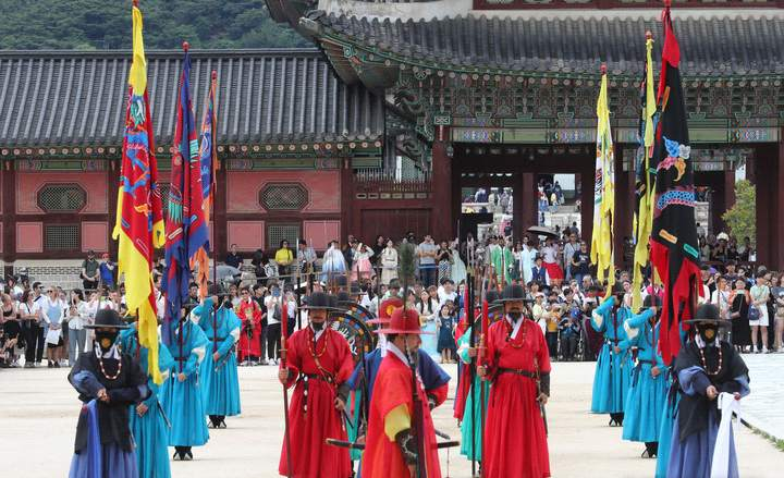 광화문과 흥례문 광장 사이에서 약 20분 동안 진행되는 수문장 교대 의식은, 다양한 악기 연주가 함께 진행되어 눈과 귀가 모두 즐거운 시간을 보낼 수 있습니다.