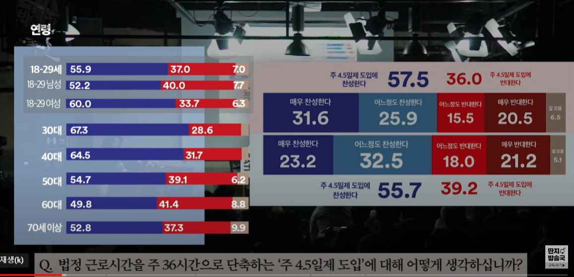 ① 민주당 "노동시간 줄이고 주 4일제 방법 제안" : 월~목요일은 8시간, 금요일은 4시간 일해서 노동시간을 줄이는 대신, 임금은 주 40시간 일할 때와 똑같이 받는 방법을 제안했습니다.