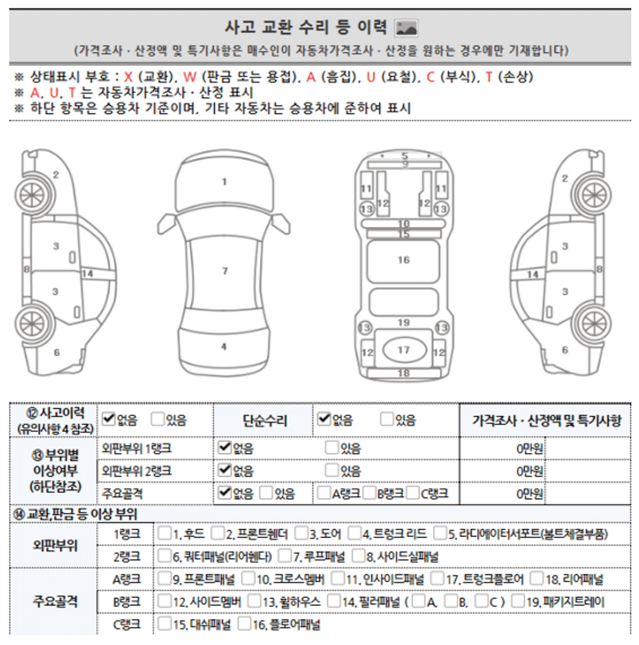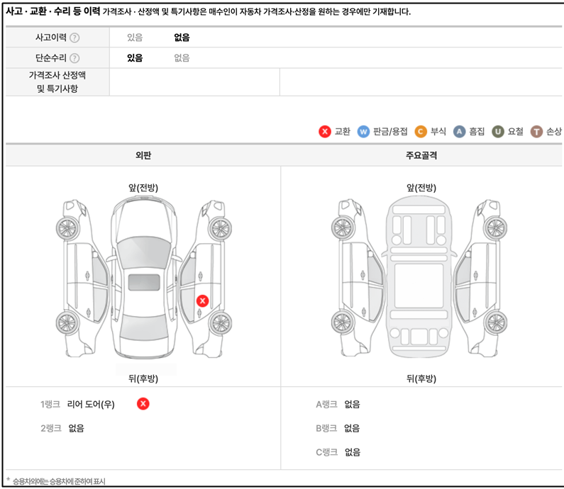 ① 사고 교환 수리 이력에서 확인해야 할 것은 도장, 판금, 교환 이력임