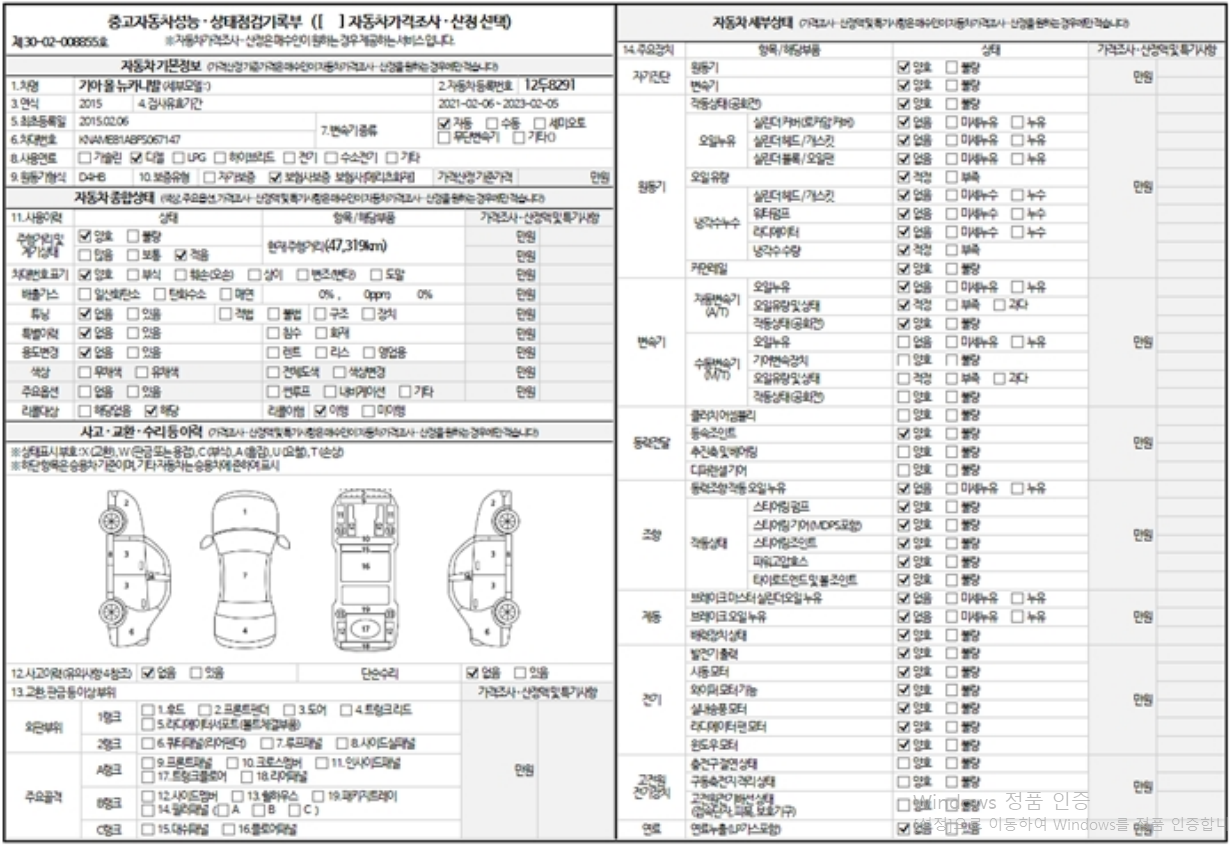 우리가 중고차 사이트에서 매물을 보고 판단할 때, 고려해야 할 정보 중 하나가 바로 자동차 성능기록부입니다. 자동차 성능기록부에는 많은 정보가 포함되어 있으며, 모두 중요한 정보입니다.