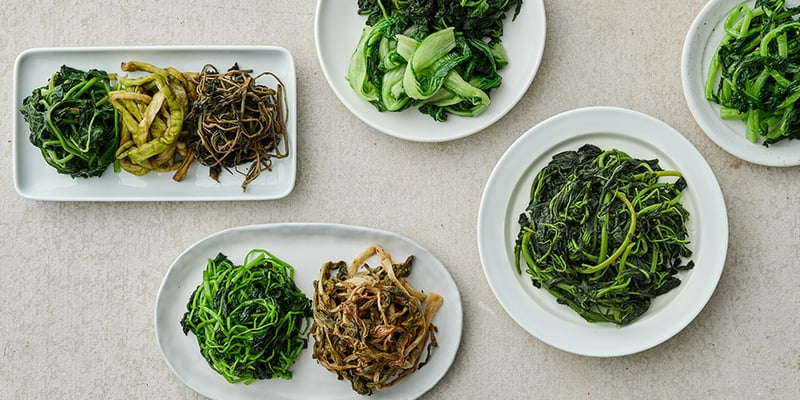 ③ 몸속에서 중성지방과 콜레스테롤을 줄이는 식이섬유가 많은 채소, 버섯, 해조류를 충분히 섭취