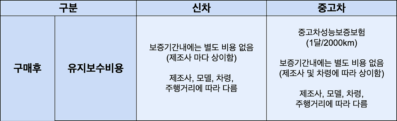 보증기간이 종료된 후에는 유지보수와 수리 비용이 발생하지만, 정기적인 메인 터넌스와 경고등 점등 및 차량 상태가 이상할 때 빠르게 대응하면 차량을 오래 유지하고 큰 비용 지출을 막을 수 있습니다.