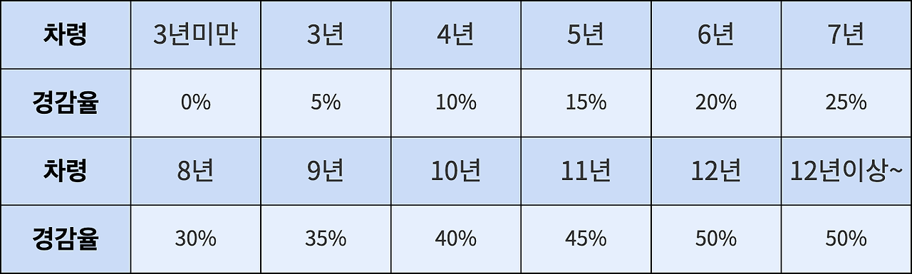 * 자동차세 = [차량의 배기량 x 배기량별 세율 + 지방교육세(자동차세 30%) ] x 차령에 따른 할인율(3년 미만 0%는 할인율 없다는 뜻)