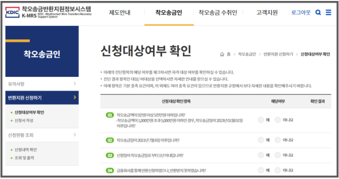 ▶ 착오 송금 반환지원 정보시스템 신청