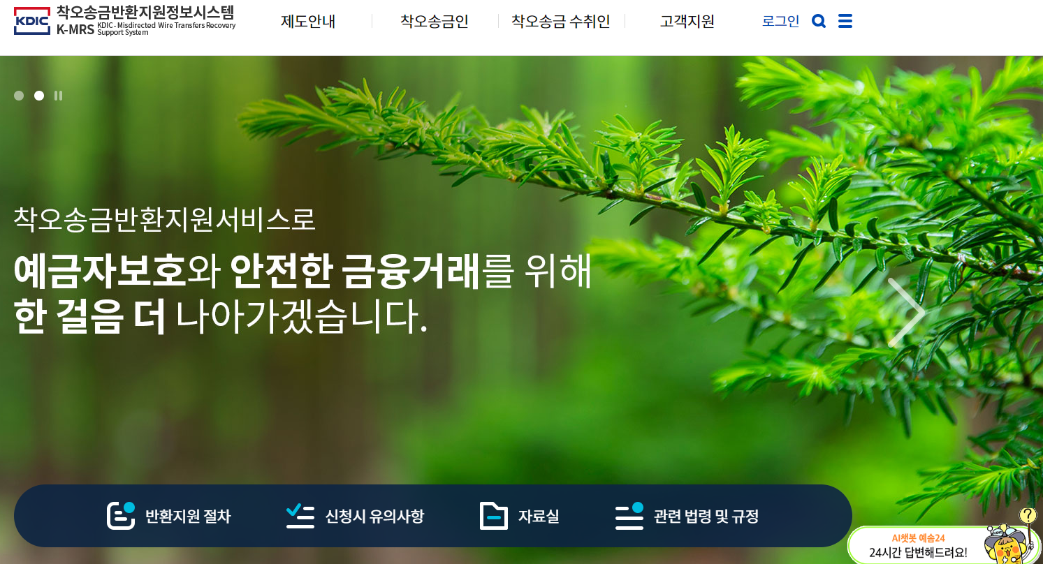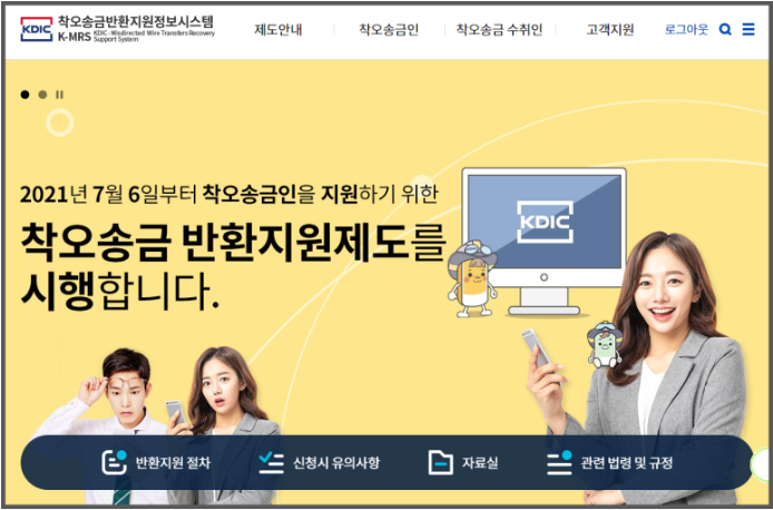 ① 예금공사 '착오 송금 반환지원 정보시스템'에 접속