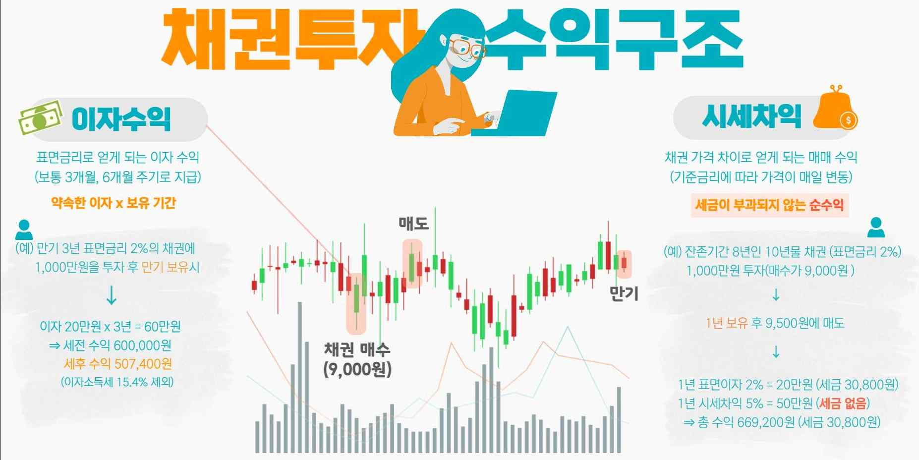 채권 투자의 수익구조는 주로 이자 수익과 자본 이득 두 가지로 나뉩니다.
